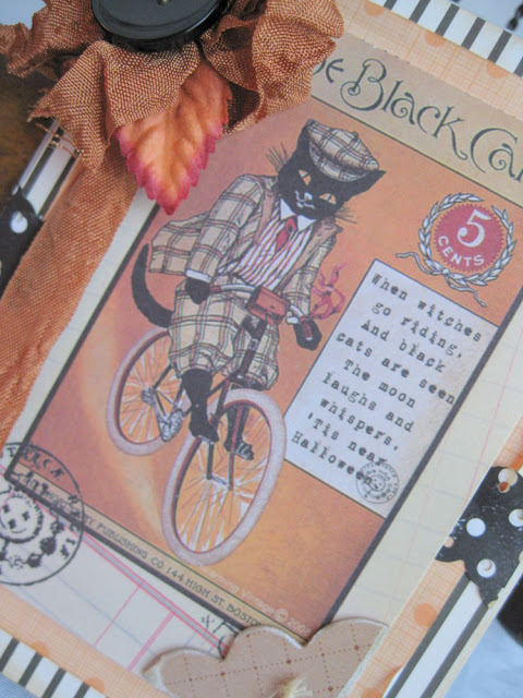 August 1st?   huh?   I say that as if I didn't have a Halloween card RIGHT ABOVE  ME....NOOO I am not trying to rush time....just the opposite.  I just am sooo smitten for holidays....love the fall colors and fun imagery.  As usual just another motley crue of cards...where ever inspiraton might lead...I try to follow.  Been having fun using a stash of vintage goodies....using them for toppings on my cards.   Rhinestones and some vintage style ladies from the cover of an old home journal.    We have some trips coming up that I am soooo looking forward too.  Hopefully all of you get to get away for a day or two....Summer is sooo brief here in the northwest.  I am crossing my fingers for an indian summer............sigh.    Well this Sunday like so many others has dwindled down..... and I feel myself dwindling down with it.  Off to read a good book and snuggle with my boy (yes he still lets me on occasion) hugs to you all and have a great Monday!   Xoxox,  Cherry