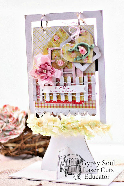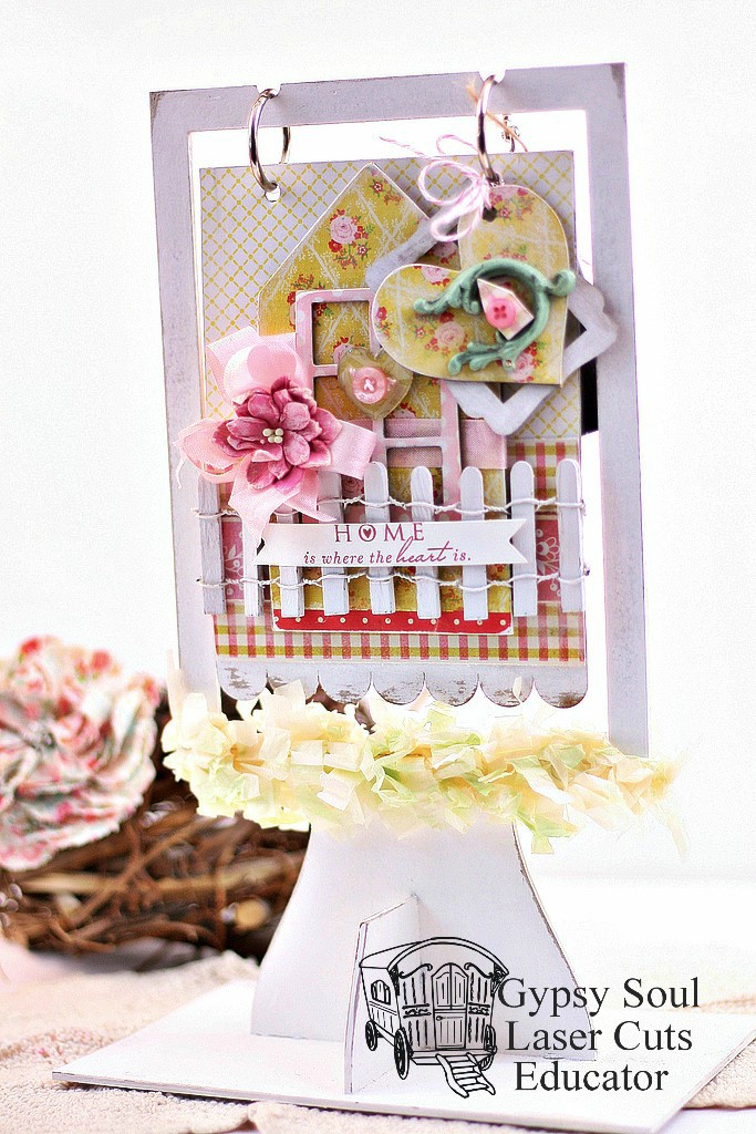 I started with the Standing Flip Book. This kit comes with several chipboard pages but I used only one and decorated both sides of it. So Depending on your mood you can switch out what side you want to see.